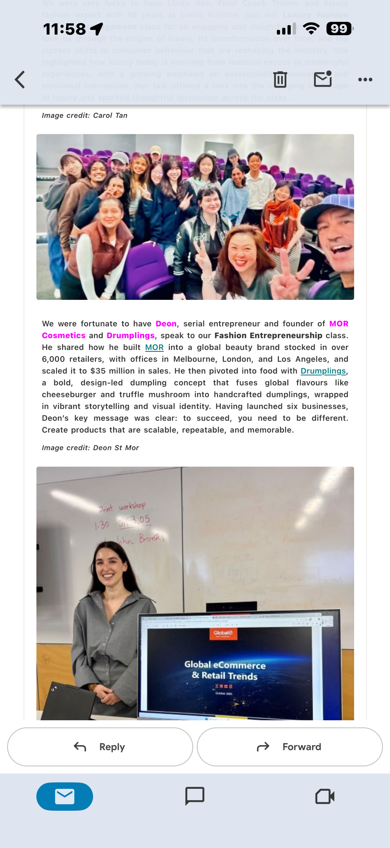 But this isn’t your typical guest lecture. Deon doesn’t show slides or read from theory. He delivers unfiltered, lived experience, decades of it, drawn from a career spent building, scaling, and leading some of Australia’s most original and successful brands.